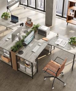 وحدة عمل موظفين بـ 4 محطات – تصميم عملي يعزز التركيز والإنتاجية