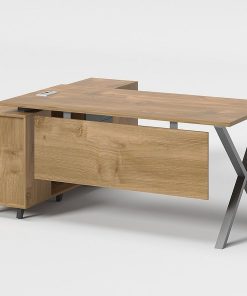 مكتب خشبي عملي بقاعدة معدنية | تصميم بسيط للمكاتب المنزلية والشركات
