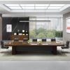 مكتب إداري فاخر بتصميم عصري يجمع بين اللون الأبيض والخشب الطبيعي الفاتح، مناسب للمسؤولين والمدراء التنفيذيين الذين يبحثون عن الفخامة والبساطة في نفس الوقت. التصميم يعطي إحساس بالثبات والثقة، مع سطح عمل واسع وتنظيم مثالي للأوراق والأجهزة.